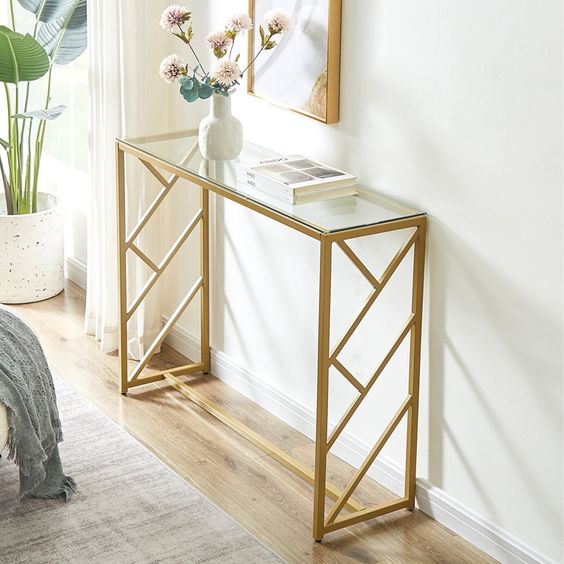 Description: Elevate your home decor with the EiweLive Modern Console Table. This stylish and functional piece features a clear glass tabletop and a unique metal base, making it an ideal addition to your living room, hallway, or bedroom. Its modern design adds an elegant atmosphere to any space, while the narrow dimensions make it perfect for smaller areas.